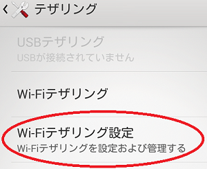 テザリング設定方法1 スマホ側のテザリングの初期設定をする