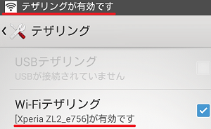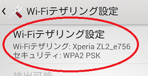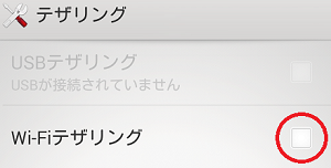 テザリング設定方法2 スマホ側のテザリングを有効にする