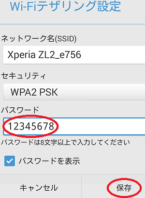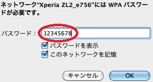 テザリング設定方法3 ノートPC側でパスワードなどを入力する