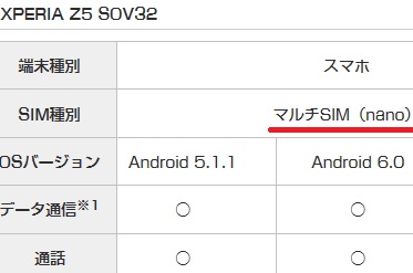 なるほど。 じゃあ今回の英雄さんは乗り換え先のMVNOにUQ mobileを選んだので、 UQ mobileのページ にアクセスして現機種(Z5 SOV32)を照会すればOKだね。 どれどれ、えーと、SIM種別はマルチSIM(nano)だね。 ![]() |