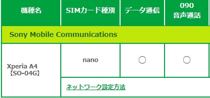 お、データ通信も090音声通話も〇になっているから使えるってことだね! SIMカード種別はnanoか。 |
